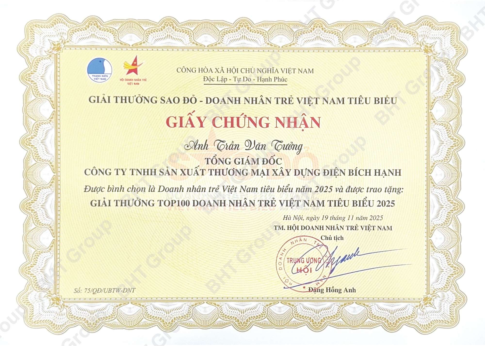 - Với những đóng góp thiết thực trong sản xuất kinh doanh, hoạt động cộng đồng và nền kinh tế đất nước, BHT đã vinh dự nhận được nhiều bằng khen, giải thưởng của Đảng và Chính phủ.